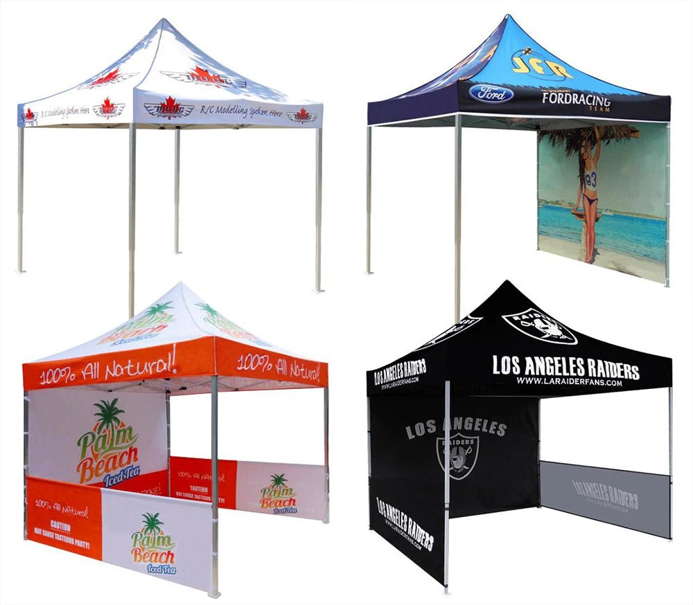 All Seasons tents include a portable aluminum popup frame and a full color custom printed tent top. Brand your event space with your logos, your colors, and your style. Full color tents reinforce your brand. Plain pre-made single color tent tops are bland and look like surplus stock when compared side-by-side with a full-color custom tent.