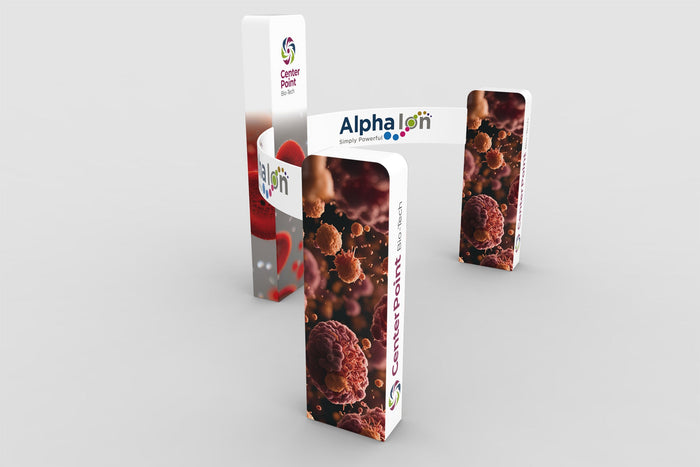 20x20 Pro Booth 16 - Luminous 14 Ft Tower and Half Ring Circular Banner Modular Display, Semi-Circle Round Banner, 14 Foot High Exhibition Booth