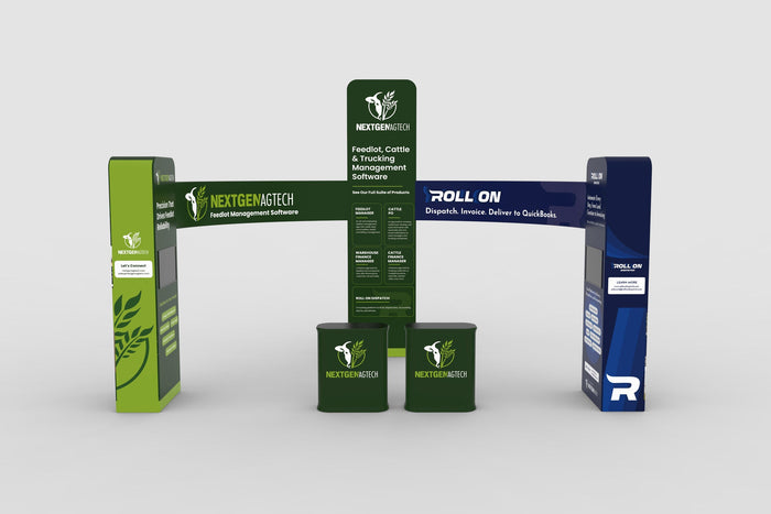 - Counters shown as an example are not included. Please add Large Trade Show Counter with Storage, package price: $399 /ea.