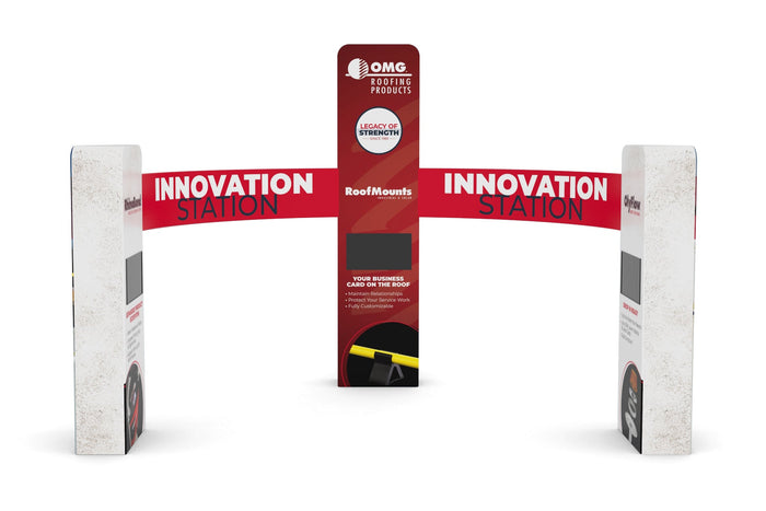 20x20 Pro Booth 16 - Luminous 14 Ft Tower and Half Ring Circular Banner Modular Display, Semi-Circle Round Banner, 14 Foot High Exhibition Booth