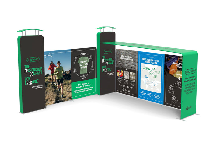 Pro-Package C is designed for a 20' W x 20' D island or peninsula booth space. Allow 2 weeks for production (6 business days with Rush) followed by shipping.