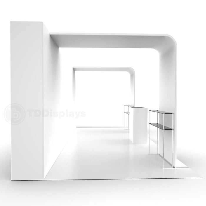 20x10 Pro Booth 18 - Inline Arches LED Backlit Standard Booth with 2 Arches, Double-sided 20 Foot LED Backlit Wall, Tension Fabric Backlit Trade Show Display