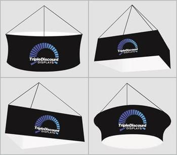 You've seen them. They're huge and can be seen clear across from the other side of the trade show hall. Hanging banners hang from the trade floor ceiling for 360 degree presence above the crowds.